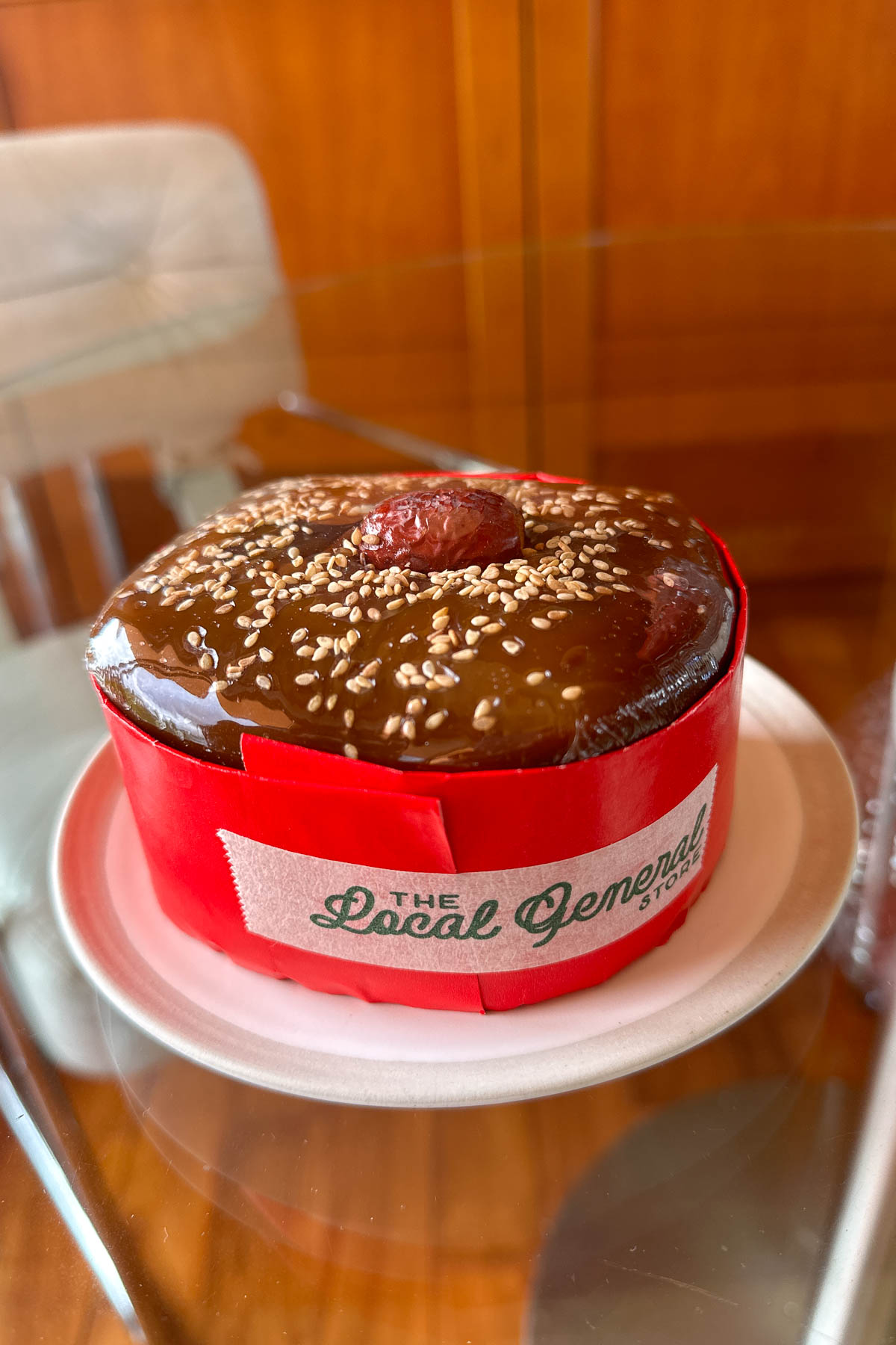 In the weeks leading up to Lunar New Year, many local shops and bakeries offer fresh steamed gau. Pictured above is the gau selection at Sing Cheong Yuan Bakery in Chinatown. They have three sizes: mini, regular, and large!